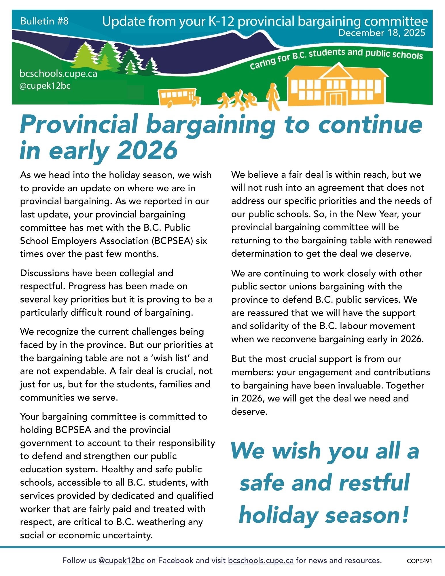 K-12 Bargaining Update – December 2025